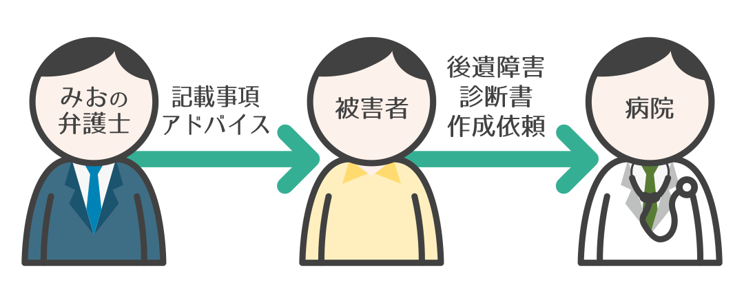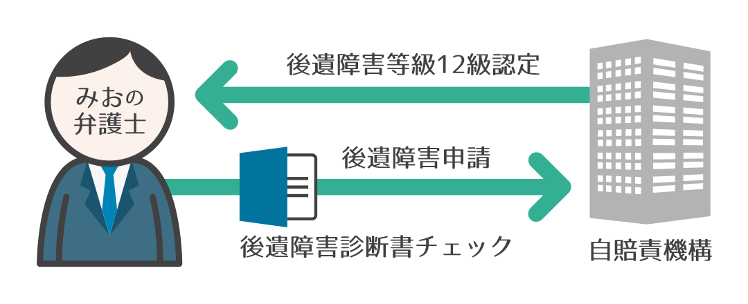 後遺障害等級認定の際は、主治医の先生が作成する後遺障害診断書が重要書類になります。そのため、Ⅰさんに後遺障害診断書に膝関節可動域や痛みが残っていることの記載をすべきことや、今後の症状の見通しについて記載する必要があることなどをアドバイスし、後遺障害診断書の作成を進めました。